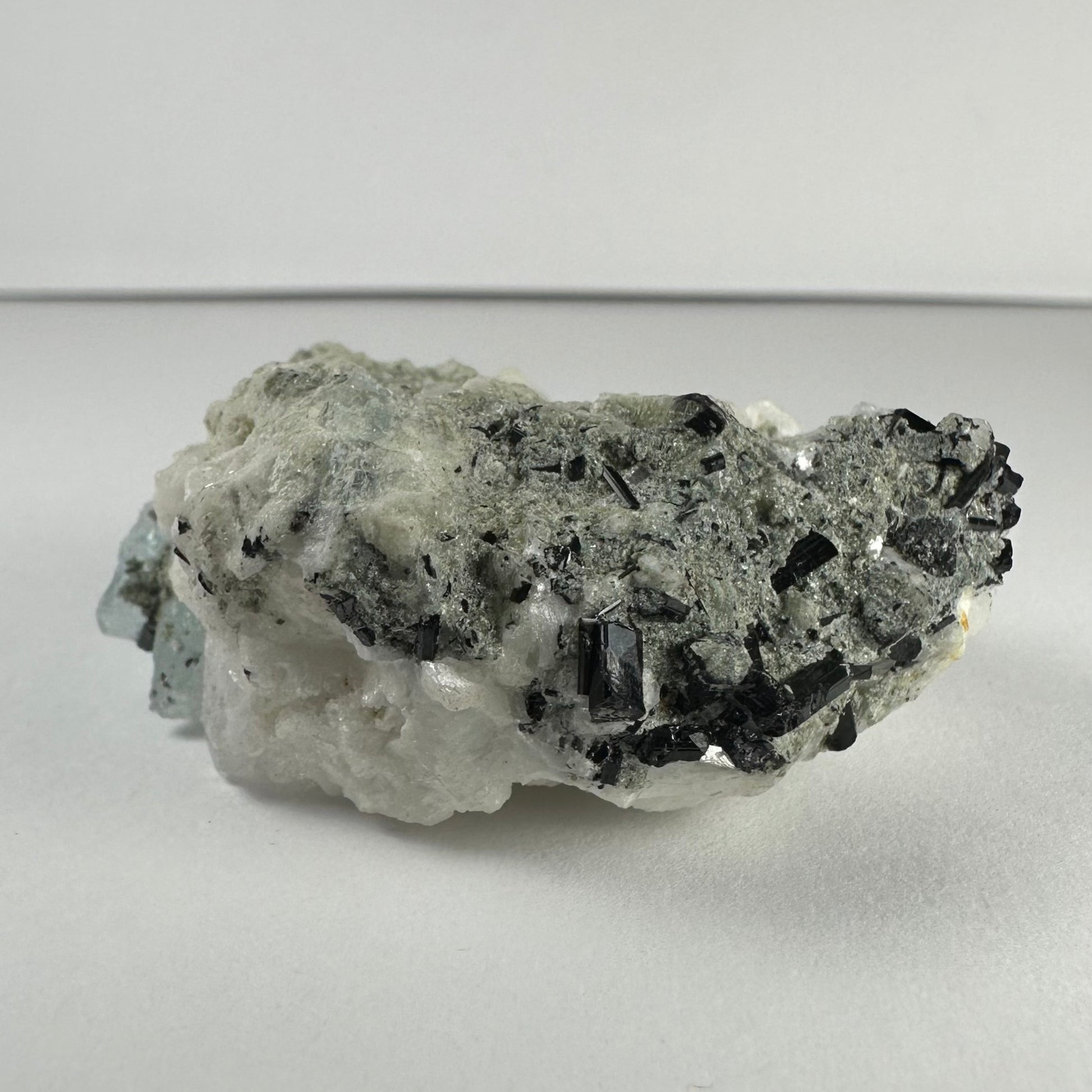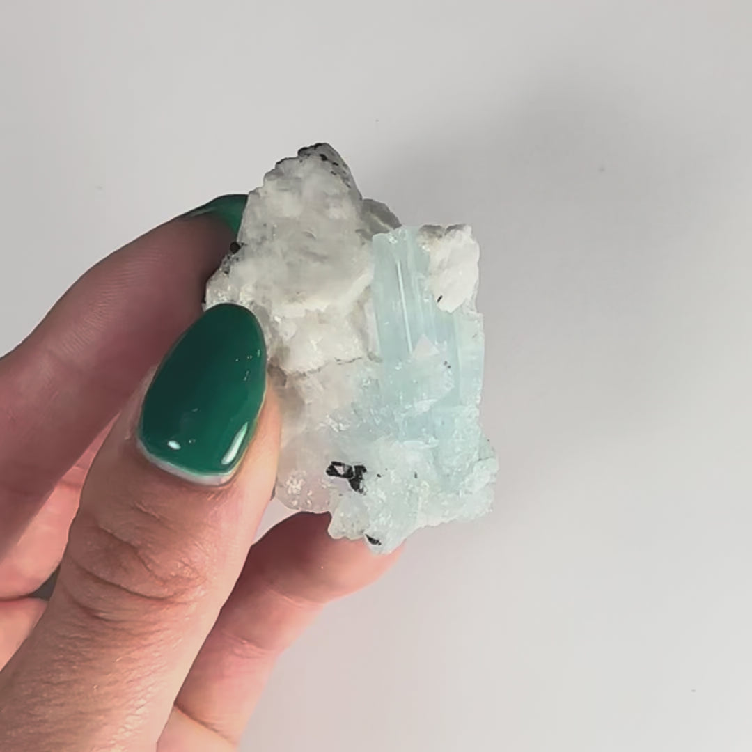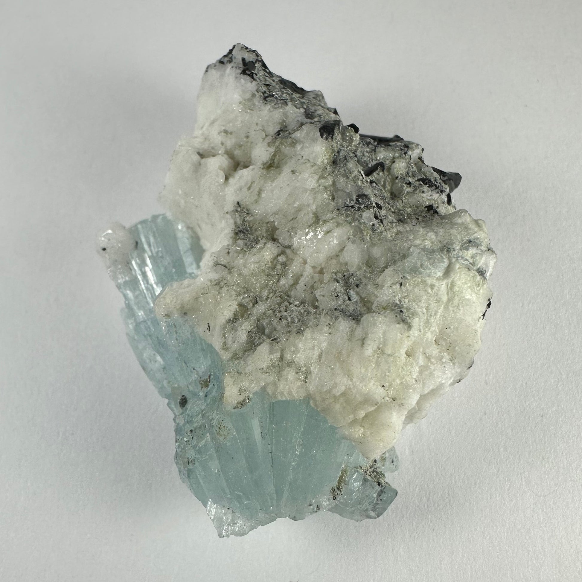 Aquamarine spray formation with Albite and black Tourmaline